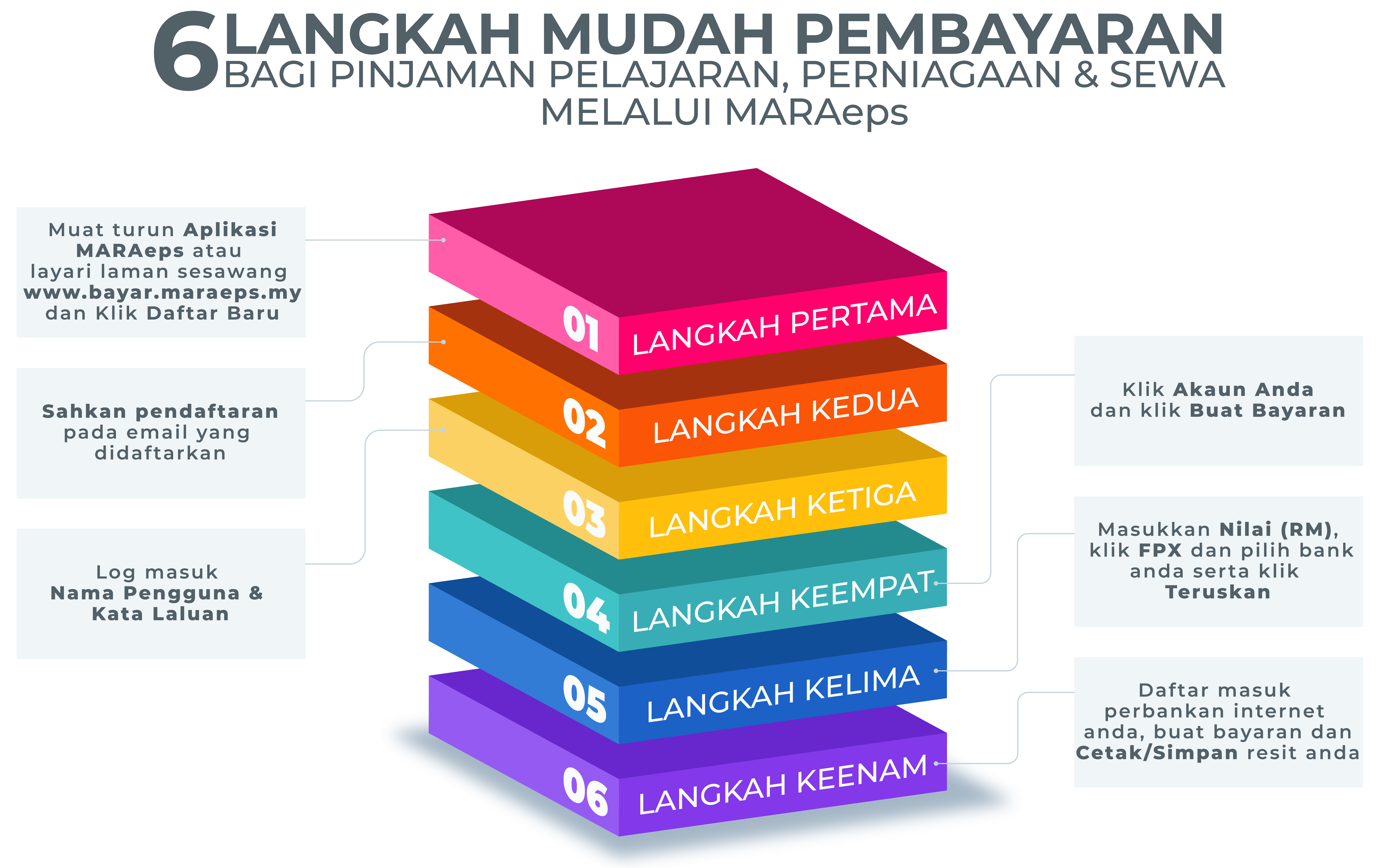 Bagi memudahkan anda untuk membuat pembayaran melalui MARAeps, ikuti 6 langkah ini bagi pembayaran pinjaman, perniagaan dan sewa.